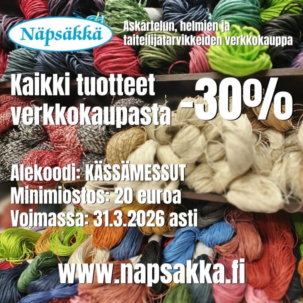 Yli 40€ tilaukset ilman toimituskuluja, silityskuvat -15% ja tossut -10%